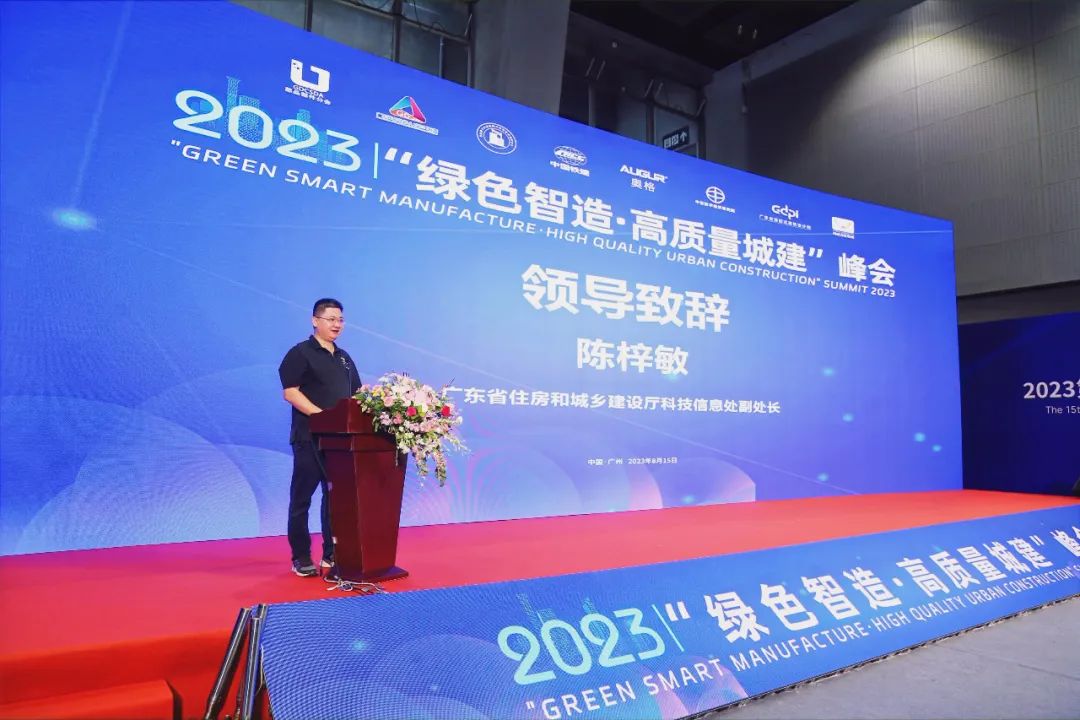 由广东省建设工程绿色与装配式发展协会指导,广东省建设工程绿色与装配式发展协会部品部件分会、广东省土木建筑高技能人才培养联盟、粤港澳大湾区装配式建筑技术培训中心主办,中国铁建港航局集团有限公司、奥格科技股份有限公司、中世数字经济研究(广州)院、广东省装配式建筑设计院有限公司、广东鸿威国际会展集团有限公司承办的2023“绿色智造∙高质量城建”峰会8月15日在广州广交会展馆A区圆满举行。
